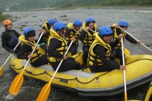 初めての試みである「ラフティング」にGリーダーが挑戦してきました! 全員がウェットスーツにライフジャケット、ヘルメットをかぶると、まるで「海猿」のよう! 気分もぐんぐん高まってきて、いざ神通川へ! おおきくて頑丈なゴムボートを全員で車からおろし、空気をいれ、川まで運びます。 ガイドさんからの安全説明を真剣にきき、ドキドキワクワクでいざ出陣! ボートに飛び乗ると、予想以上に早い川の流れにびっくりしました。 パドルをこぐかけ声は、「ガイア!ガイア!」(笑)。 全員で力をこめてボートを走らせ、流れにのまれないよう安定させます。 5月は雪解け水が多く、ラフティングをするのにはもってこいの時期との話。 次から次へくる瀬で、激流を乗り越える度に「うぉーーー!」と歓声があがりました。 リーダーもみんな「チョー楽しい!!」「すげぇー!」の連発。 岩山に巨大な穴を見つけたり、サギに近づいたり、漁師や釣り人に遭遇したり。 川の中から見る景色はとても新鮮で、どんなテーマパークのアトラクションよりも 楽しいと思えました。 なだらかな流れのところでは、飛び込んだり泳いだりして楽しみました。 川の水の流れを読み、みんなを引っ張ったり楽しませたりするガイドさんの姿も かっこよく、とてもいい思い出になりました。 日常では味わえない体験、Gリーダーも思う存分ラフティングを満喫できた一日でした。 |