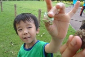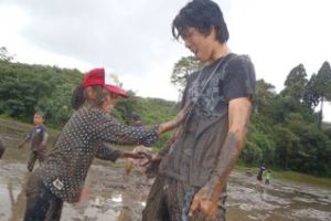 約2カ月ぶりのガイアキッズということもあって、久しぶりに会う子どもたちは よく喋れるようになっていたり背が伸びていたりと、 夏休みで少し成長した姿を見せてくれました。 泥んこ体操が終わると、リーダーと子どもたちの泥合戦がスタート!! はやてとそういちろうとようすけときよまさは早速、シャウとねたろう退治へ出陣!! 子どもたちのパワーと体力は無限大に広がっていました。(笑) たかことのぞみは田んぼの泥で温泉気分を味わっていたね。 泥で汚れた体を近くの川で洗い流しに行って、また泥の温泉に行って、 を繰り返していたね。 1班の女の子たちはまったりと泥団子作り。 のほほんとした雰囲気も束の間、チョッカクが女の子たちの泥の造形の餌食になりましたとさ♪(笑) 最後まで田んぼで遊んでいたまおは寒いのなんてお構いなし! 田んぼの泥の温かさと川の水の冷たさにビックリしてずっと笑っていたね。 最初はみんな「いやだ!」とか「気持ち悪い!!」と言っていた泥んこ遊びも、 時間が経つと「楽しい!!」とか「泥が気持ちいいよ!」と言ってくれたね。 普段出来ない体験が出来るガイアでは、子どもたちもリーダーたちも素直な表情や関わりを見せてくれました。 午後からは芝生広場で坂滑りをしたり、森に探検に行ったり。 りょうはとはやたが持参したムシかごには、バッタやカマキリやコオロギが入っていたね。 班のみんなで協力して捕まえていたね。 午後から参加したしおりはフーミンと一緒に田んぼへ。 2人きりの時間と2人だけの空間は本当にキラキラしていたよ。 僕はどの活動でも、どの時間でも共通して“今を楽しむ”ことが大切だと感じています。 後先のことを考えずに、今という時間を、今目の前にいる子どもたちと、思いっきり笑ったり 泣いたりすることが出来るって最高だと思います。 今回のキッズは、今を楽しんでいる子どもたちで溢れているようでした。 |