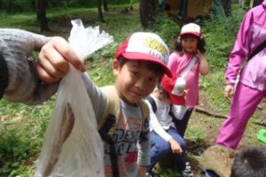 初めは緊張していた子もすぐにうちとけてみんな元気に虫とりに出発! 虫かごと網を持って探検に出かけていきました。 夕飯は定番のカレー。ひでみはハートや星の形に野菜を切っていてとってもかわいかったね! どの班もとってもおいしそうにできていて、たくさん食べていました。 りんとは「世界で一番おいしい!」って。 みんなで作ったカレーは格別の味だったかな? 暗くなってからもみんな元気に虫探しです! クワガタがいっぱいいる木を見つけてたくさん取れました! 1班のはやとは同じ班の子にクワガタを譲ってあげていました。 色々な班でリーダーがとったクワガタをだれがもらうのかをジャンケンで決めたり、 そんな子どもたち同士の暖かな関わりも見ることができました。 7班のりく、こうせい、しょうすけたちは謎の黒い生き物を発見! 新種の生物かもしれないって言っていたね。 たけおはヘビトンボ、しゅんせいはカナヘビ、じょうたつはヤマトフキバッタ、 けんとはオニヤンマを捕まえていたね! 図鑑で熱心に調べたり、「捕まえて初めて知った!」って教えてくれたり… クワガタも人気だったけれどみんないろんな虫をたくさん捕まえていました。 いろいろな虫を通して自然と命を感じてくれたのではないかと思っています。 捕まえた虫たちを使って土俵で対決もしたね! きょうや、ふみき、うづきたちはクワガタやカミキリムシで対決! 「いけいけー!」「がんばれー!」みんなで土俵を囲んで応援して、とっても盛り上がりました。 楽しかったね! 捕まえた虫を逃がしてしまった子、クワガタがとれなかった子、悔しい思いをした子もいました。 でもそんな経験も自然の中でだからこそ! お金で買えない思い出がたくさん詰まったキャンプになりました。 |